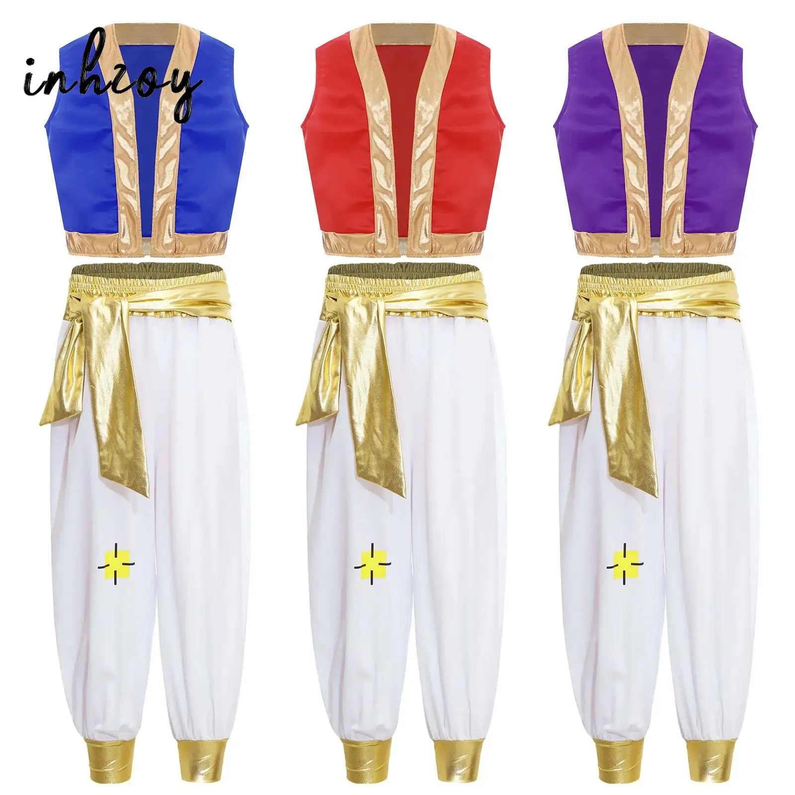 Kids Toad Super Brother Costume Game Character Bros.Mario Arabian Prince Cosplay Boys Vest and Pants Set for Halloween Carnival