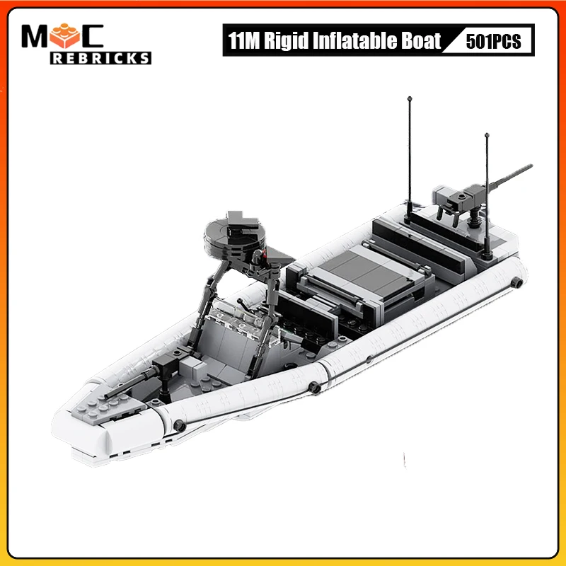 Military Series Building Block US Navy 11M Naval Special Warfare Rigid Inflatable Boat Assembly Model Bricks Toy Christmas Gifts