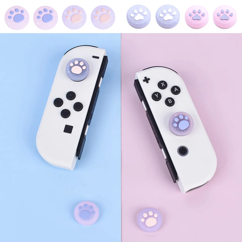 4pcs Cute Glitter Cat Thumb Stick Grip Cap Joystick Soft Protective Case for Switch OLED Joy-con Controller NS LITE Button Cover