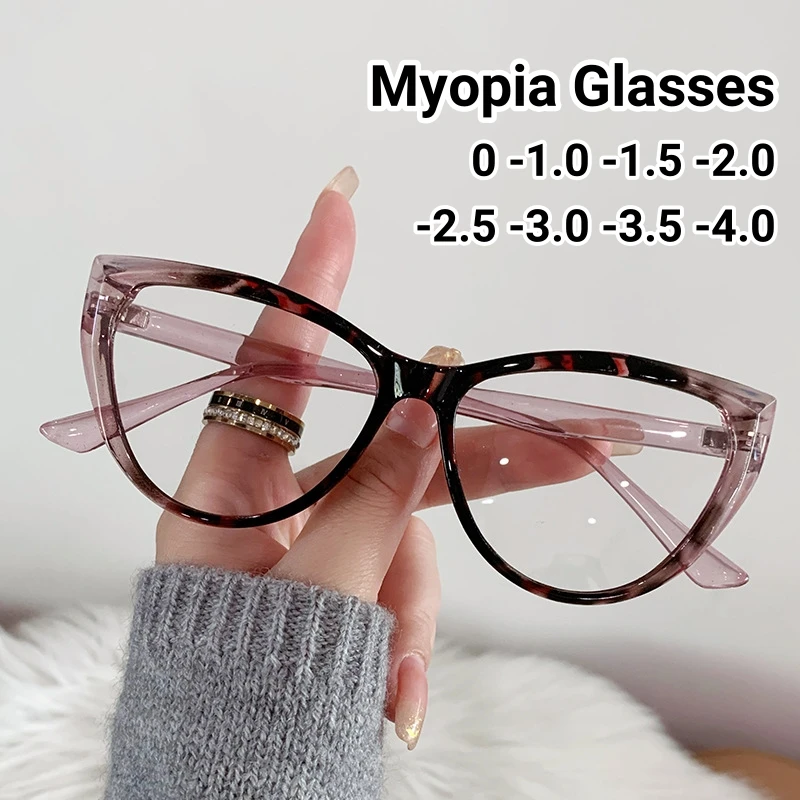 Cat Eye Finished Myopia Glasses Women Men Short Sight Spectacles Diopter -0.5 -1.0 -2.0 -2.5 -3.0 -4.0 To -8.0