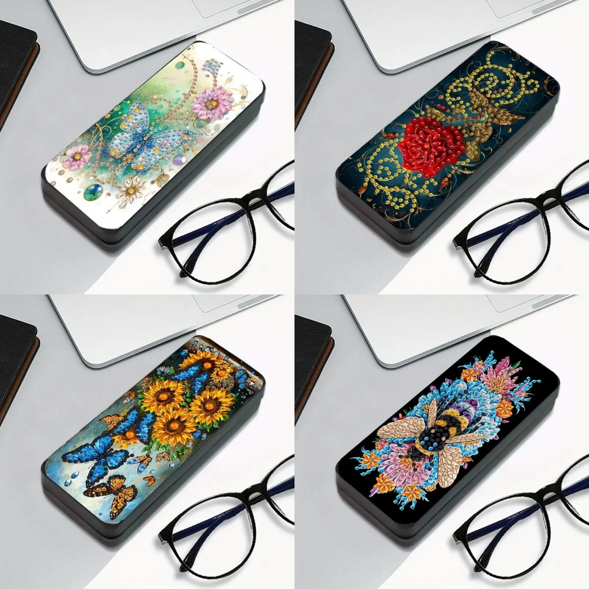 1-piece crystal art painting kit eyeglass case set, 5D DIY diamond painting of butterfly and flower patterns