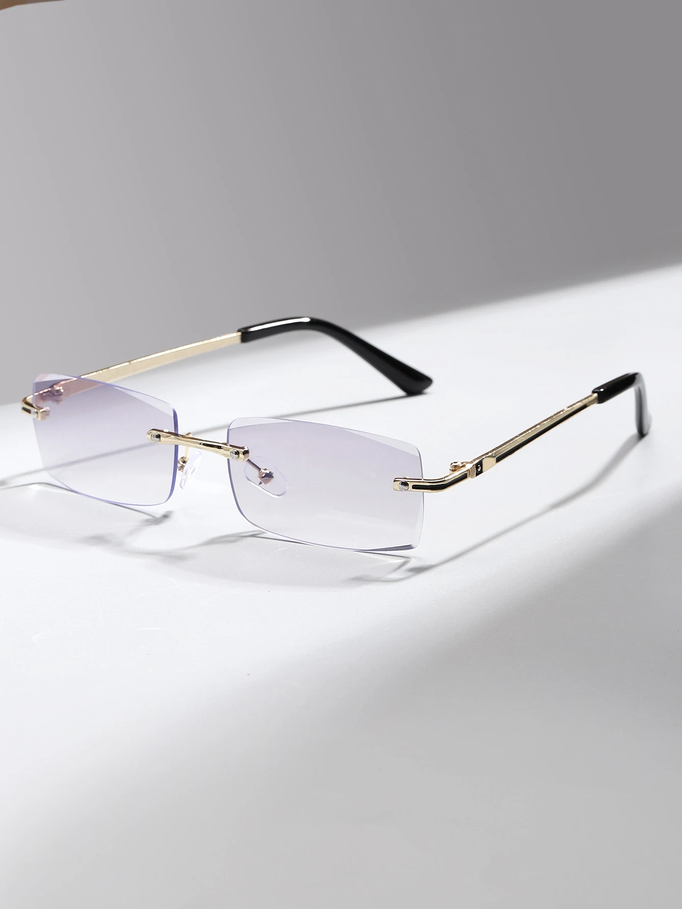 1PC Unisex Square Metal Rimless Fashion Anti-Blue Light Clear Glasses For Office Daily Reading