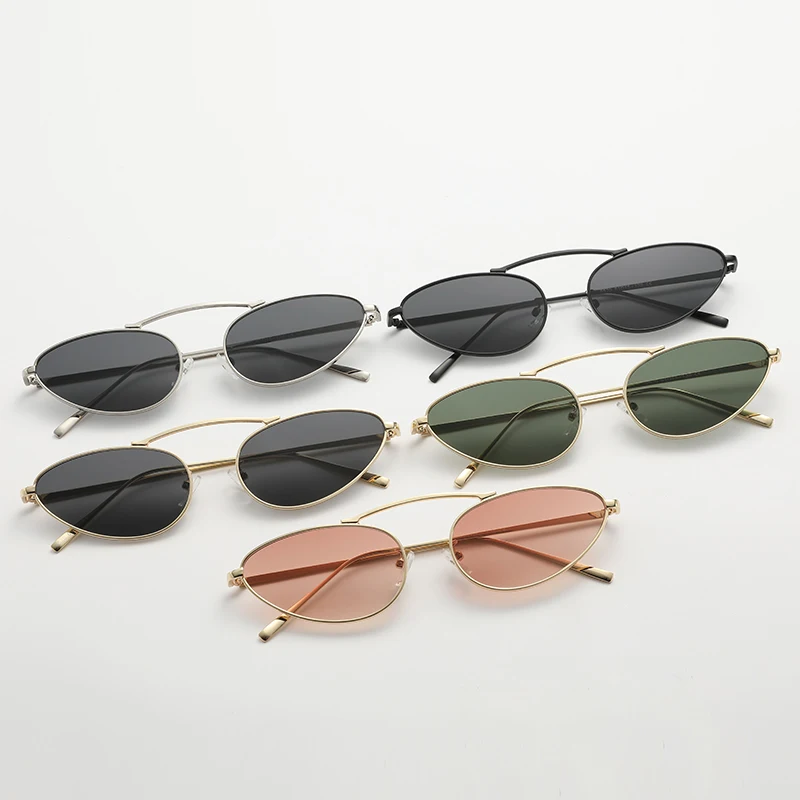 New Triangle Cat Eye Sunglasses Sun Glasses Female Metal Frame Oval Eyeglasses Unique Elegant Green Eyewear UV400