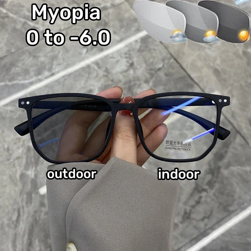 Fashion Photochromic Myopia Glasses Men Women Square Anti Blue Light Finished Prescription Eyewear Ultralights Retro Glasses