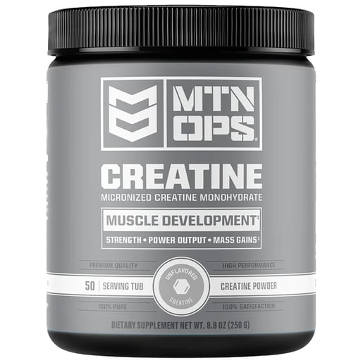 MTN OPS Creatine Monohydrate Tub - This powerhouse supplement is a widely studied / well known exercise and weight-lifting product that helps customers perform at a high level in the gym - building muscle strength, improving power output, and...