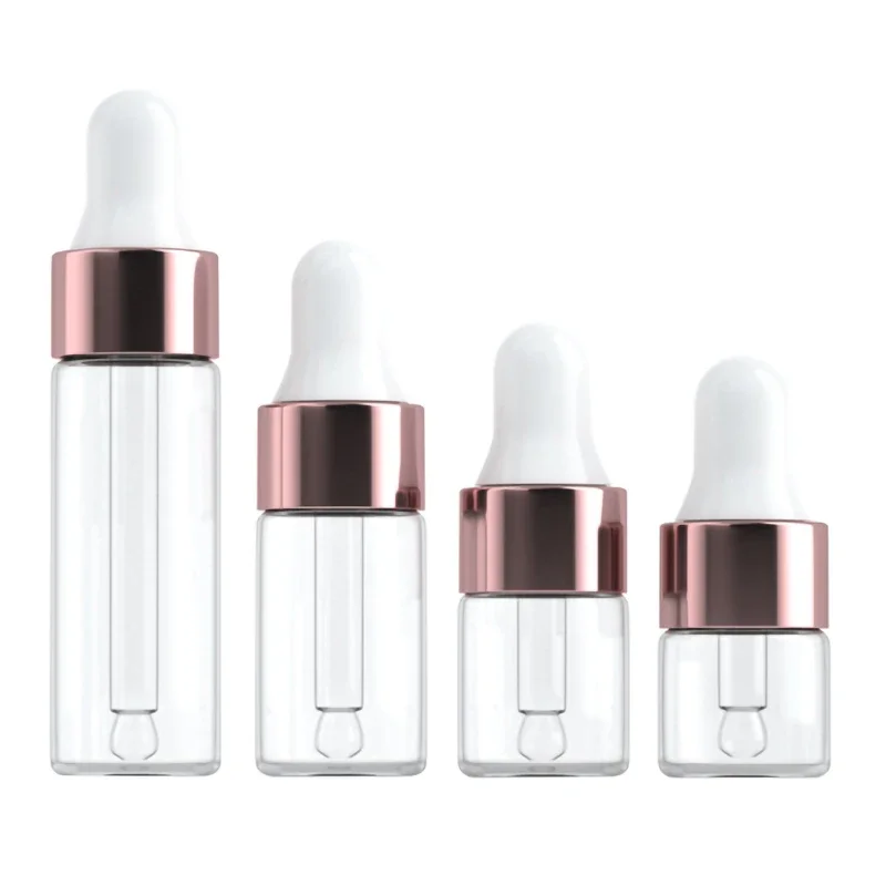 10/20pcs Mini Dropper Bottles Glass Empty Essential Oil Aromatherapy Bottles Rose Gold Cap Pipettes Bottles 1ml 2ml 3ml 5ml