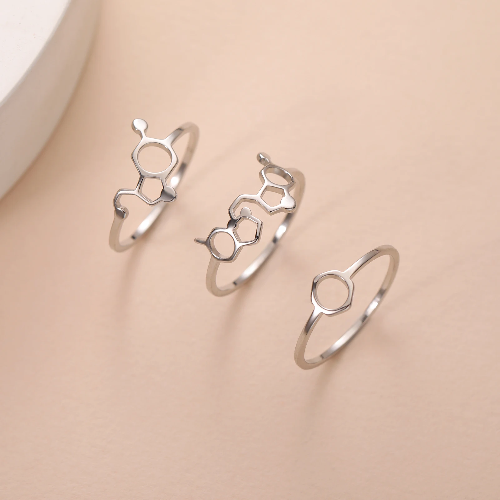 Skyrim Caffeine Chemical Molecule Ring for Women Stainless Stee Rings Dopamine Benzene Serotonin Molecular Science Jewelry Gift