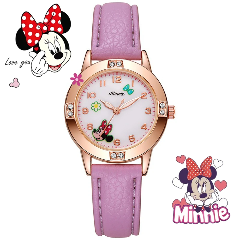 Disney Mickey Minnie Cute Cartoon Girls Kids Quartz Watches Children's Watch Lovely Fashion Girl Wristwatches Toy Gifts