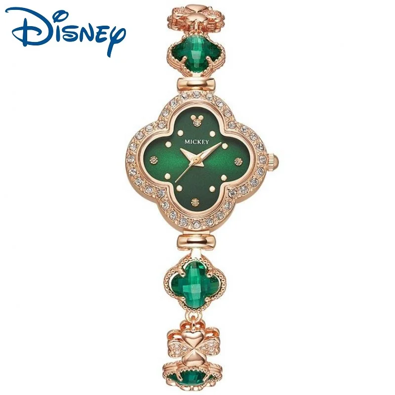 Disney For Women Watch Mickey Mouse Quartz Wristwatch Four Leaf Clover Bling Crystal Girl Lady Lovely Bracelet Relogio Feminino