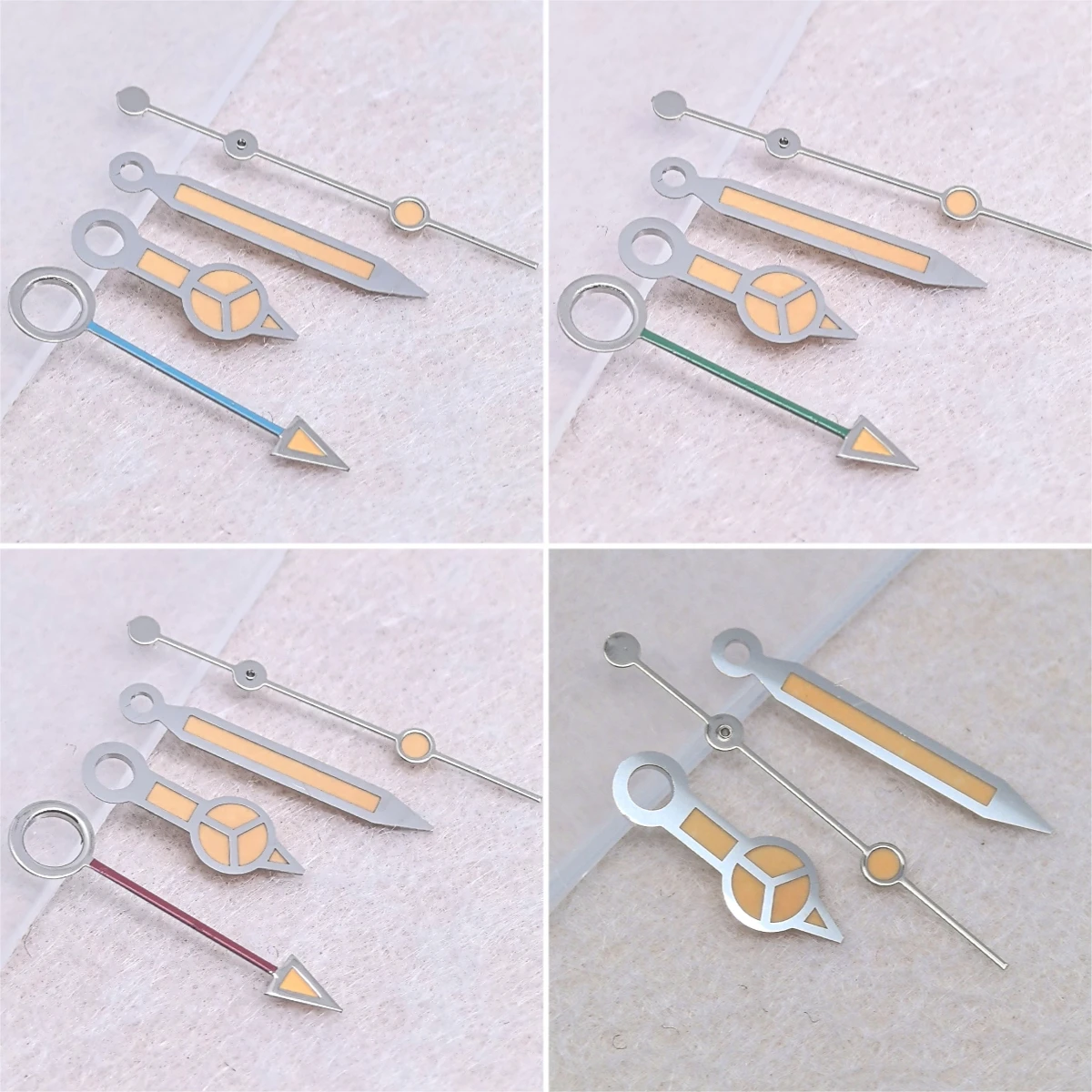 Orange NH34 Watch Hands with GMT Alarm Hand Yellow Green Luminous Wristwatch Modified Parts 4-pin Needles