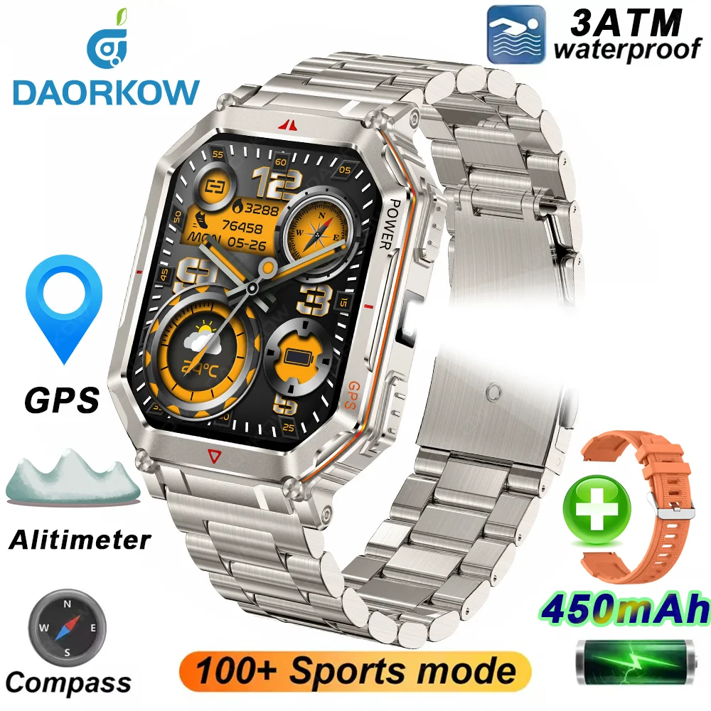 2025 New Outdoors Military GPS Sports Smart Watch Men Built-in Dual-Band GNSS Compass Altimeter 10ATM Bluetooth call Smartwatch