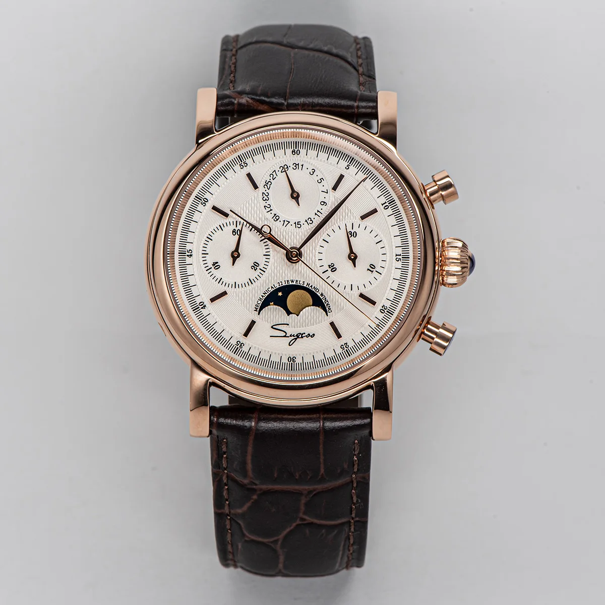 Sugess Pilot Chronograph Mechanical Watches Men Waterproof Original ST1908 Movement Moon Phase Calendar Wristwatch Swanneck 2022