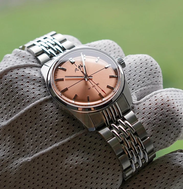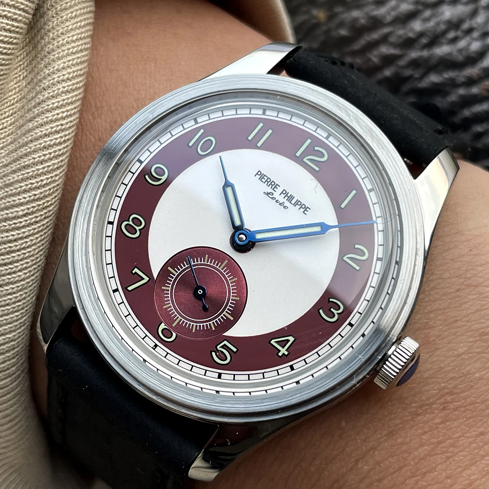 38mm NEW PIERRE PHILIPPE Formal watch Red Dial Ultrathin Retro Arrow Pilot Watch Men Mechanical Manual Hand Wind Watch ST17