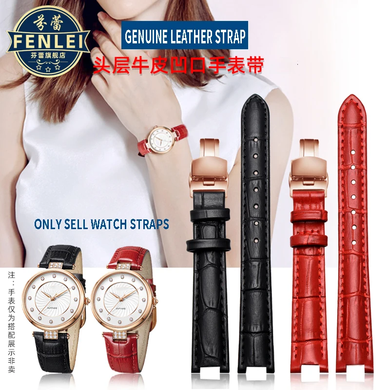 For Rossini 516752 616764 517784 5758G Notch Watch Chain Cowhide Leather Watchband Red Bracelet Men Women 14mm 16mm 18mm Strap