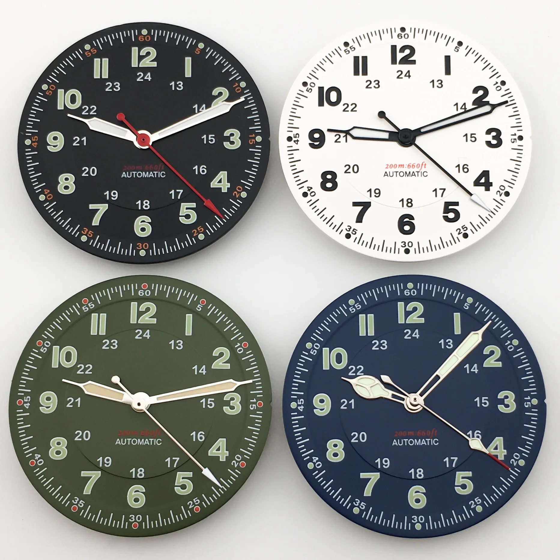 BLIGER Watch parts 29mm Pilot Watch Dial With Hands Black White Blue Green Dial C3 Luminous Fit NH34 NH35 NH36 Movement Modified