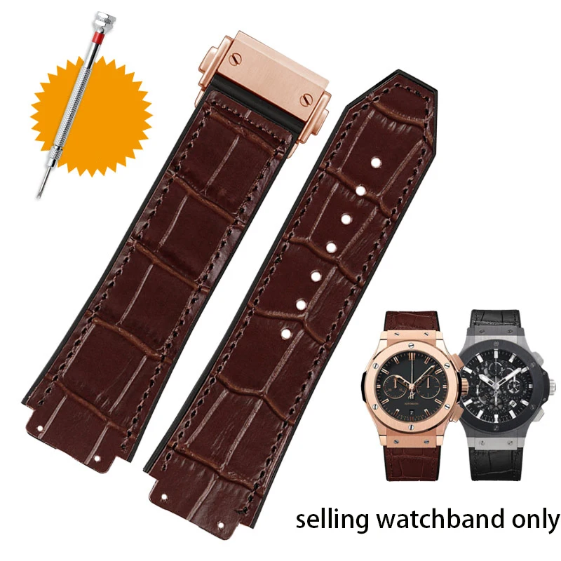 For Hublot strap BIG BANG Watchband stainless buckle free tool Men New real cow cowhide Rubber Watchband 26*19mm Brown Bracelet  Read more