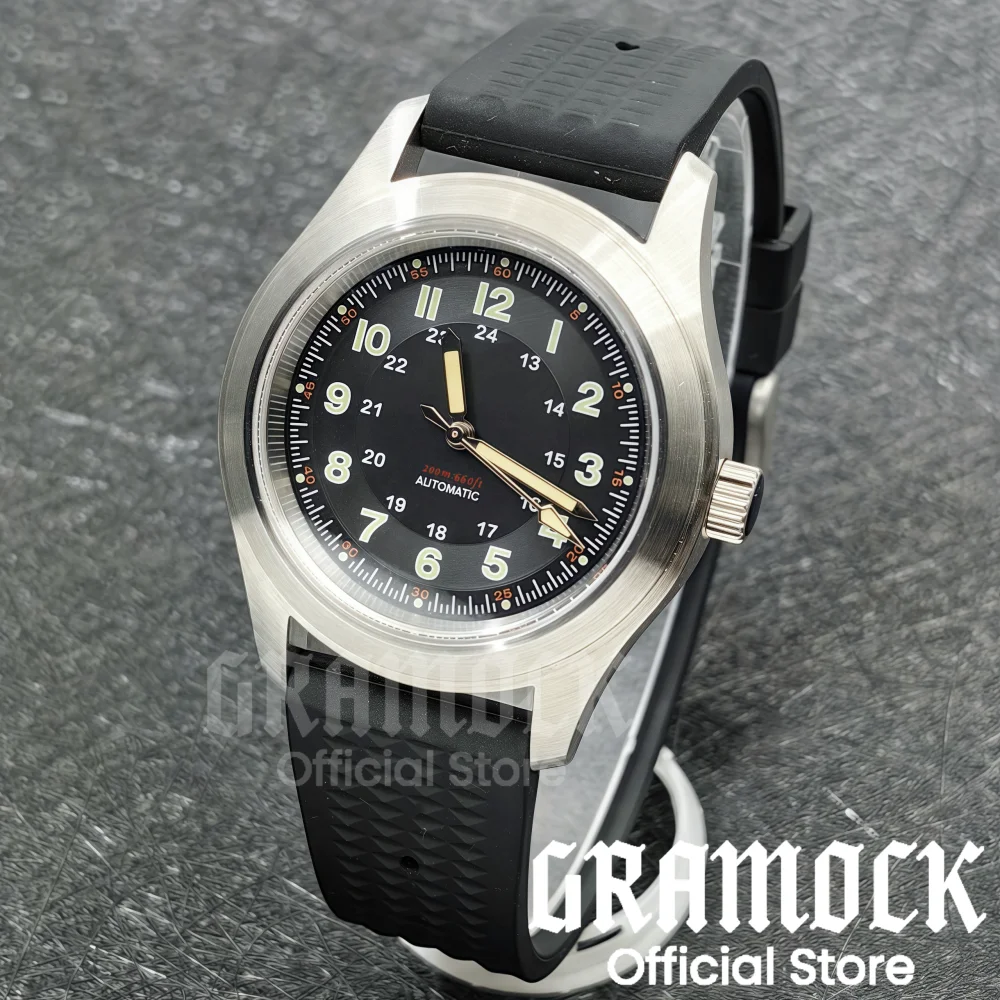 Gramock Fashion Double Domed Sapphire Glass 36/39mm Retro Military Diver Watches NH/PT Automatic Sand Blast Pilot Watch for Mens