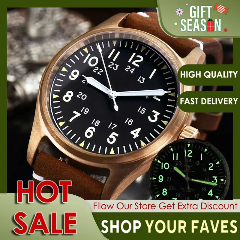 Tandorio Solid Bronze CUSN8 Diver Automatic Watch for Men NH35 Movement Black Dial Sapphire Crystal Date 20BAR Waterproof 39mm