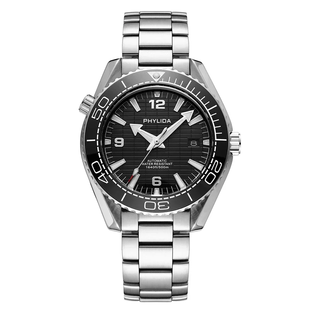 PHYLIDA 500m Men's 43.5mm Automatic Diver Watch Black Dial Sapphire Crystal Skyfall Special Edition Ceramic Insert NH35A
