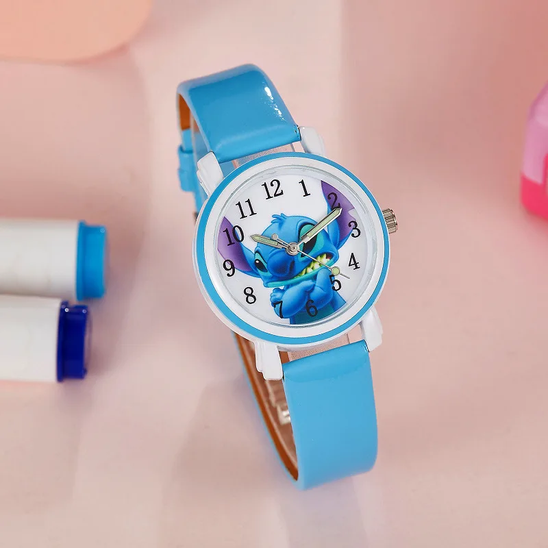 Disney Stitch Children's Watches Cartoon PU Strap Analog Watch Kids Quartz Watches Boys Kids Gifts for Primary School Students