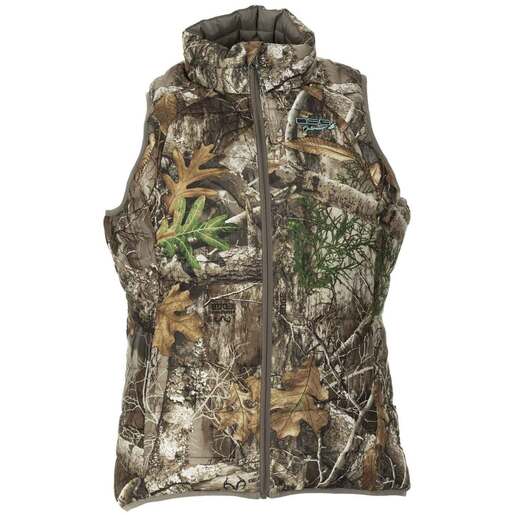 DSG Outerwear Women's Realtree Edge Reversible Puffer Hunting Vest - This vest is filled with featherless down insulation and can be worn for hunting or casual wear, for any season from spring through winter. Brushed microfiber camo fabric reversing...