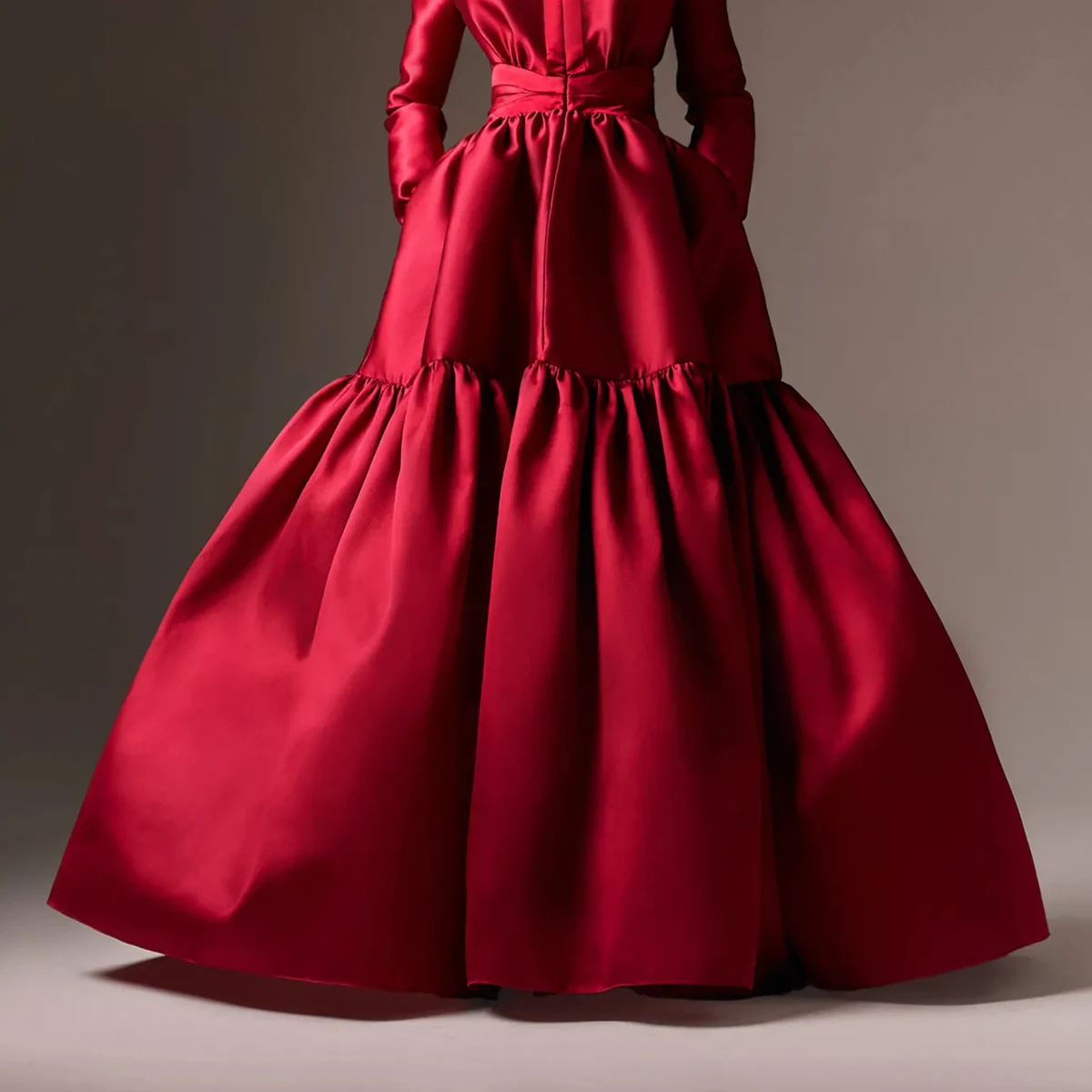Dark Red Ruffled Taffeta Evening Maxi Skirt with Pockets Floor Length Pleated Satin Long Formal Party Skirts Wedding Skirt Saia