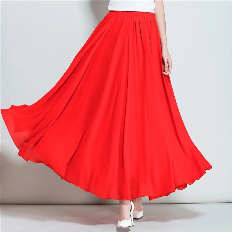 2022 Summer Women Chiffon Long Skirt A-Line Skirts Women Elastic High Waist Maxi Skirts Elegant Solid Skirts Femme Streetwear