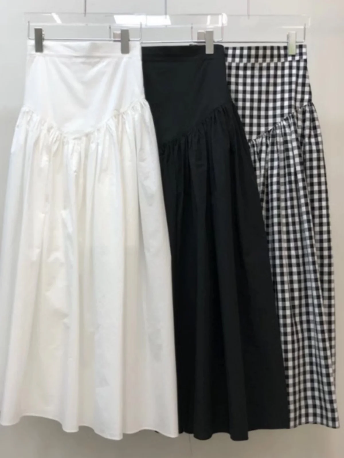 White High Waist f Skirt Women's Spring 2024 New Sweet Anti-Aging Folded Design Slimming Bla Long Skirt Commute Korean S...