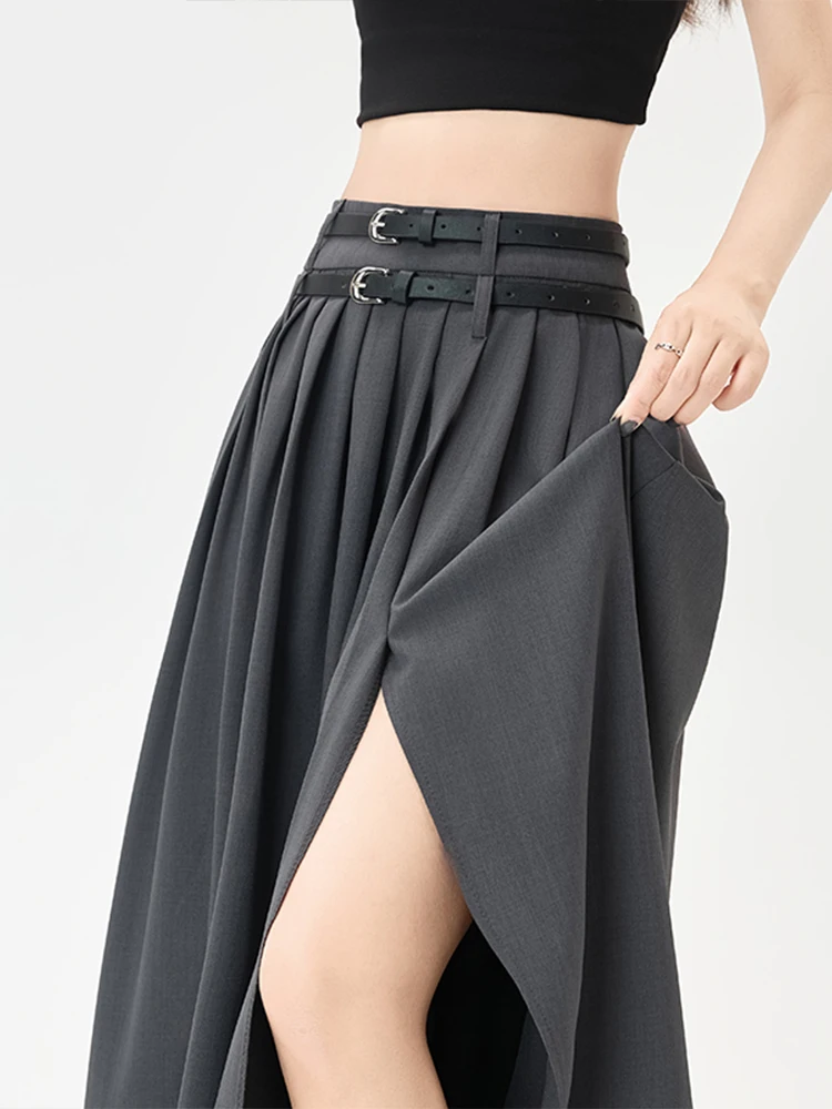 ay Suit f Skirt Women's Spring Autumn Small Size High Waist A-Line Slim Pleated Skirt Wide Hem Long Skirt