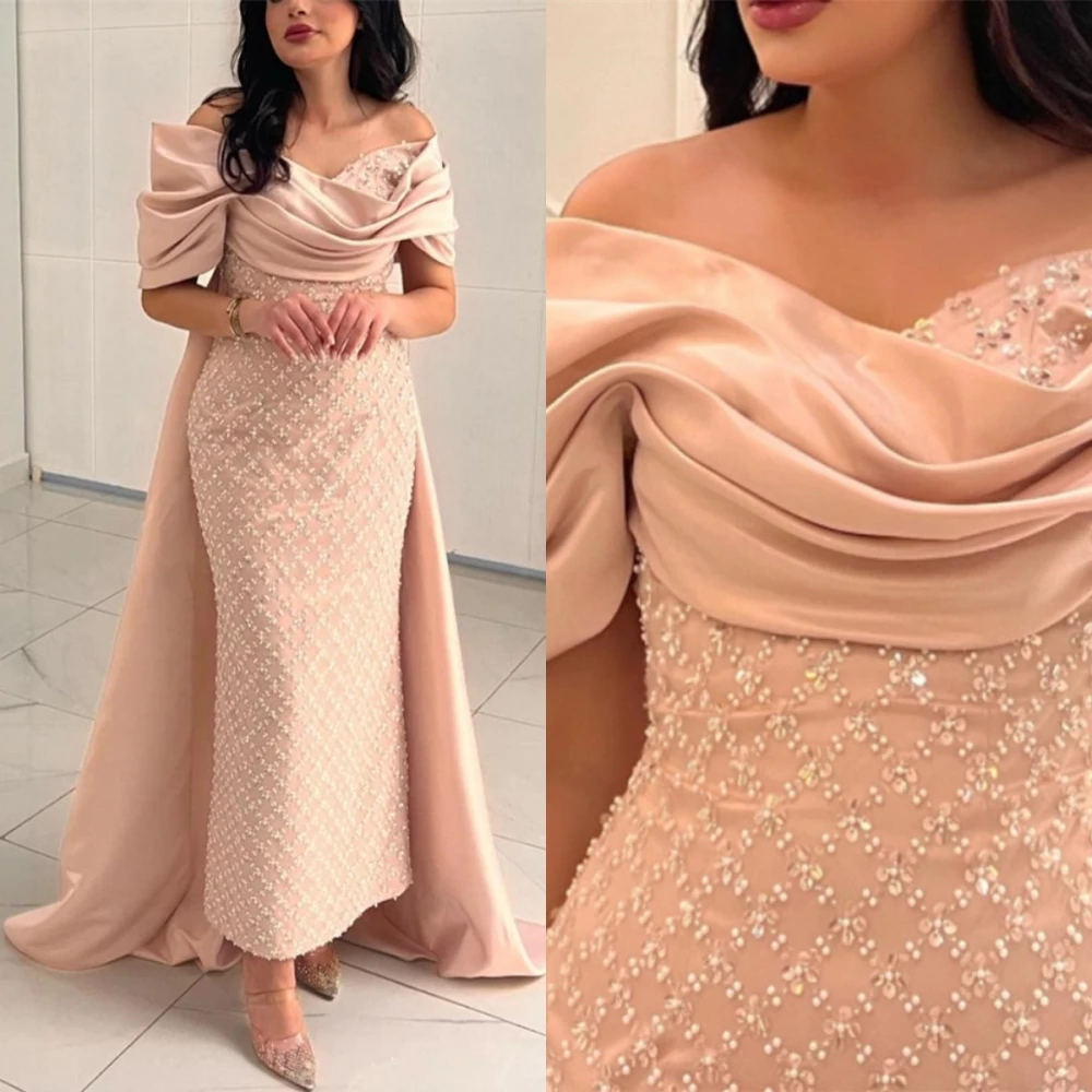 Customized Elegant Ruched Off the Shoulder Sheath Prom Dresses Floor Length Sequin Short Formal Evening Gowns платье на выпускно