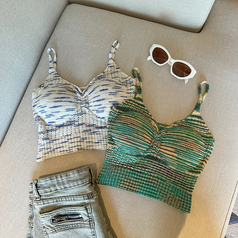 Women Summer New V-Neck Knit Tank Top 2024 Summer Slim Women Tops Female Short Female Sexy Tie Dye Casual Sleeveless