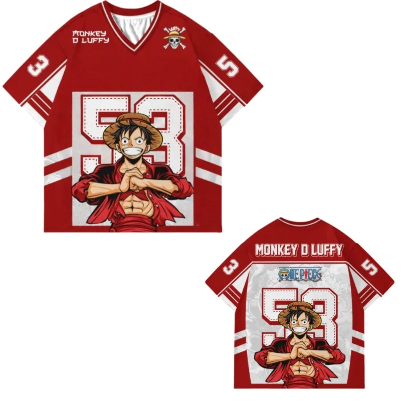One Piece Baseball V-Neck Print T-Shirt Cartoon Crayon Women's, Short Sleeve Branded T-Shirt, Stylish Y2K Gothic Knit