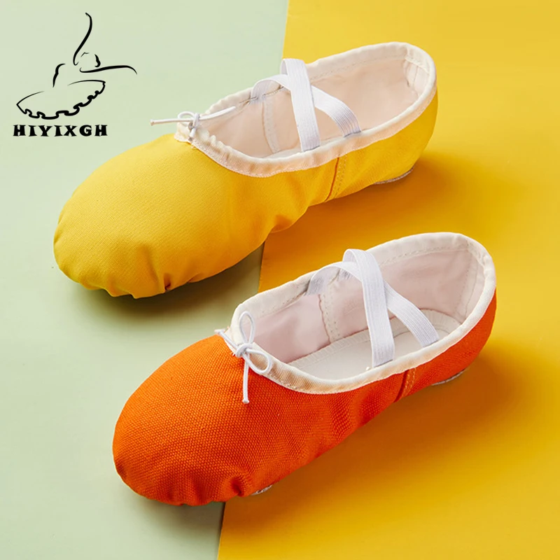 2025 Canvas ballet shoes for girls, yellow and orange soft sole ballet slippers for children's exercises ballet shoes for women