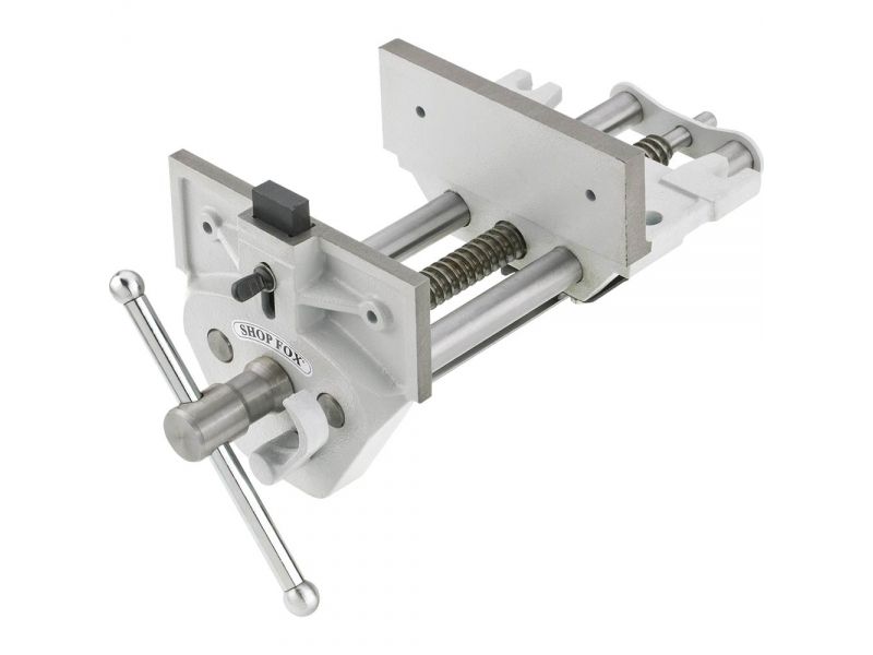Shop Fox D4327 7-Inch Quick Release Wood Vise - The heavy cast iron wood vise with polished guide rods have quick release levers that disengage the screw for fast and efficient operation. They also feature sliding dogs for securing long workpieces to the bench and disappear out of the way when not...