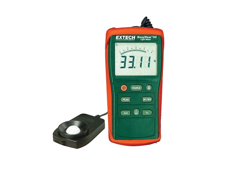 Extech Instruments Easyview Wide-Range Light Meter, Model EA30 - The Extech Instruments Easyview Wide-Range Light Meter measures up to 40,000 ft.-candles and 400,000lux with 3 accuracy. Common Usage Checking light levels, Includes Case, holster, stand, LCD Display Yes. Large LCD display with bargraph Data hold...
