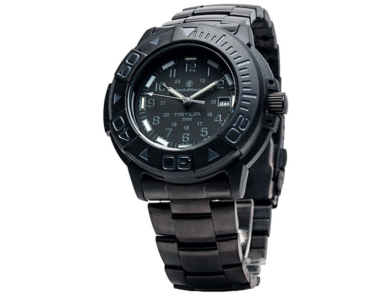 Smith & Wesson tritium dive watch (Black) with military - style illumination and Swiss movement. A rugged, precision watch with self-illuminating Swiss-made tritium tubes, guaranteed to deliver 25 years of consistent glow! that's why the military uses...