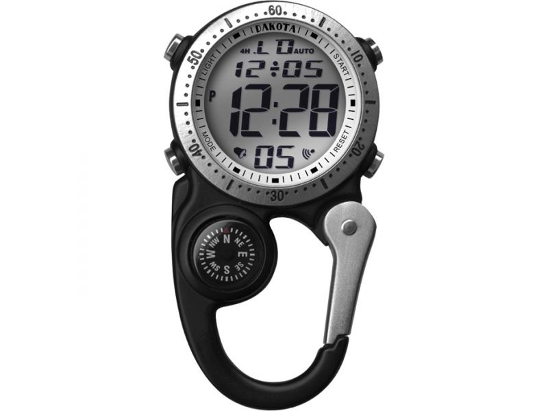 The Dakota Watch Company Digi Clip Watch clips onto your belt loop, backpack or jacket with the integrated spring carabiner. Solid design featuring an alloy case with stainless steel watch back and aluminum clip house stopwatch, countdown timer, dual...