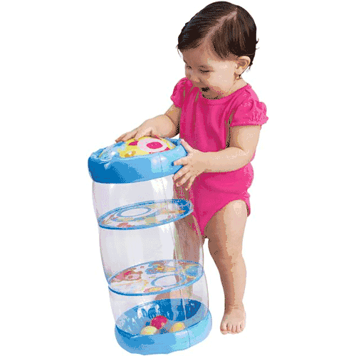 International Playthings Early Years Farm Friends Roller Activity Toy - Inflatable activity toy features bright colors, adorable farm friend graphics and 3 rattling balls inside plus a challenging game for little ones. Includes scenes on both ends plus two walls inside with different printed scenes, creating three separate...