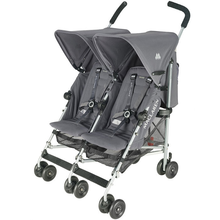 Maclaren Twin Triumph Stroller - Charcoal/Silver - With more features than ever before, the Twin Triumph makes the perfect lightweight stroller for two kids to travel in style! It features Maclaren's signature umbrella fold that makes it super light and compact for travel.