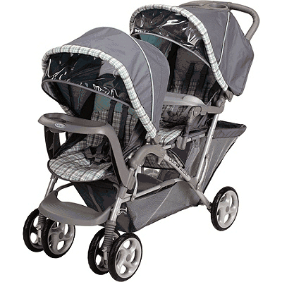 Accepts all Graco Infant Car Seats Rear seat reclines flat, for baby's comfort Stroller holds 2 children up to 40 lbs each One-hand, self-standing fold with storage latch makes stowing it a snap 2 reclining seats with canopies and footrests