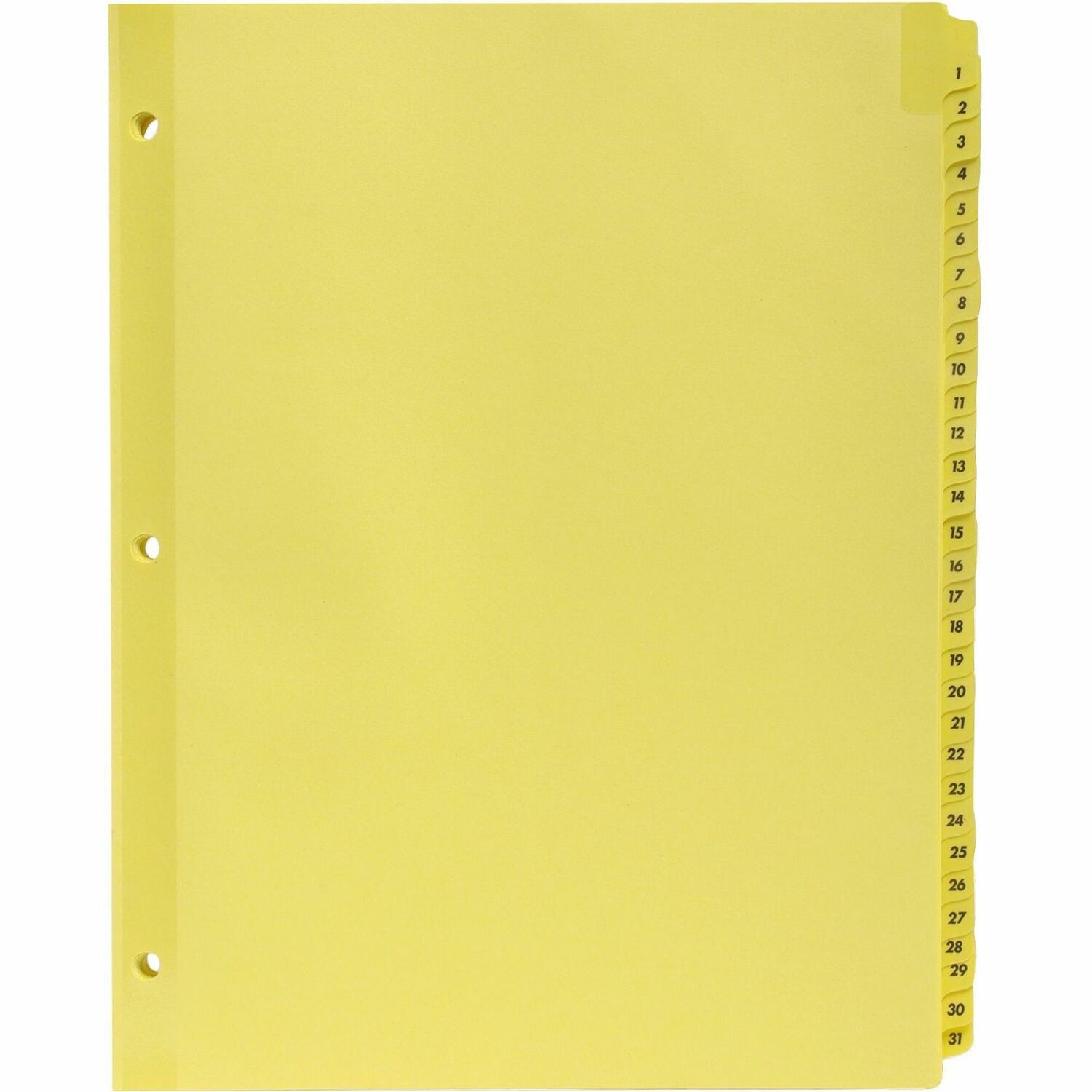 Sparco Numbered 1-31 Index Dividers - Clear-coated tabs are durable and clearly visible on both sides. Tabs extend 3/8"". Heavy-duty paper is reinforced at binding edge. Dividers feature three 9/32"" holes punched and buff-colored paper. Numbered tabs range from 1 to 31.