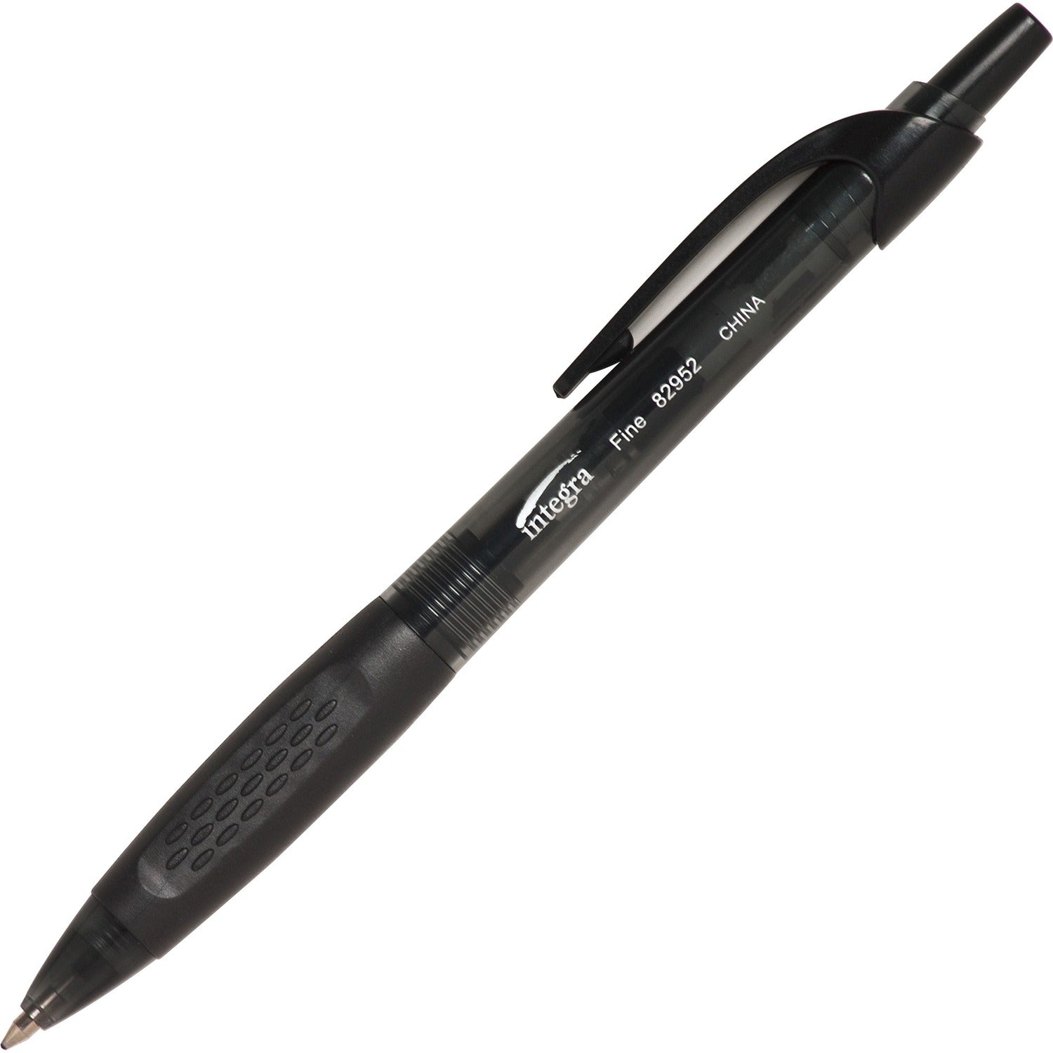 Integra 82952 Integra Retractable Ballpoint Pen ITA82952 ITA 82952 - ITA82952 Retractable ballpoint pens feature a textured rubber grip and clip. Rubber grip and clicker match the ink color. Barrel is transparent but slightly tinted the same as the ink color.