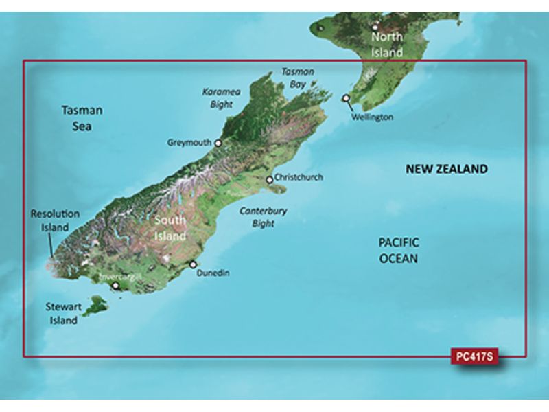 Garmin VPC417S - New Zealand South - SD Card - Maps & Add-Ons . VPC417S Covers: Includes the entire coast of the South Island, including the Bounty Islands to the southeast and Snares islands to the southwest; also includes the southernmost part of the North Island, from Foxton Beach to Cape Turnagain