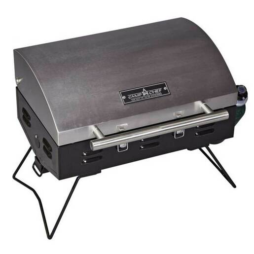 Camp Chef Table Top Grill - Features Perfect for grilling just about anywhere Light, portable and powerful 12,000 BTU stainless steel tube burner Matchless ignition Nickel plated cooking grates Stainless steel lid Porcelain coated base Removable grease drip tray for easy cleaning...