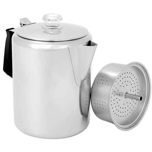 GSI Outdoors Glaicer Stainless Percolator with Silicone Handle, 12 Cup screenshot. Coffee Makers directory of Appliances. Click to enlarge product image  GSI Outdoors Glaicer Stainless Percolator with Silicone Handle, 12 Cup - Percolator