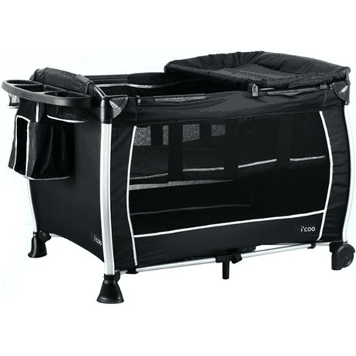 I?Coo 2011 Play Yard in Black - The i?coo Play Yard sets a new benchmark when it comes to stability and versatility. A solid, real wood base gives this play yard uncharacteristic stability. Wheels allow the play yard to be easily portable. And the handy carry bag makes taking the...