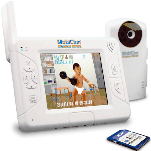 Mobi Mobicam DXR Digital Monitoring System - Featuring two-way audio communication and built-in recording capability, the MobiCam Digital DXR Audio/Video Monitoring System provides versatile, portable surveillance for the home or office.