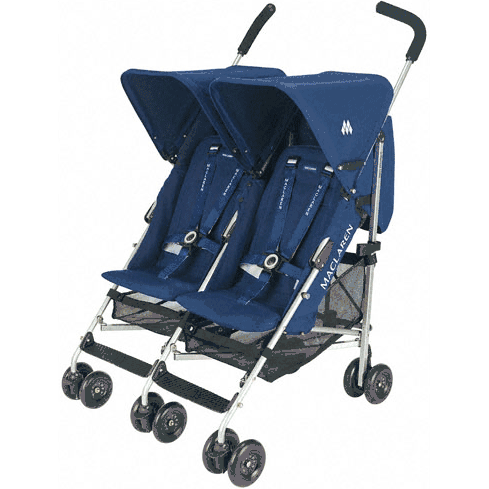 Maclaren Twin Triumph Stroller 2009 Navy screenshot. Strollers / Joggers directory of Baby Gear. Click to enlarge product image  Maclaren Twin Triumph Stroller 2009 Navy - Fits through standard doorway Basic Weight 10.6kg / 23.4lb (without hood, shopping basket or raincover) Carrying Capacity up to 30kg / 110lb (US) Appropriate From Birth Recline Multiple independent positions with adjusting straps Wheel Size 11.4cm /