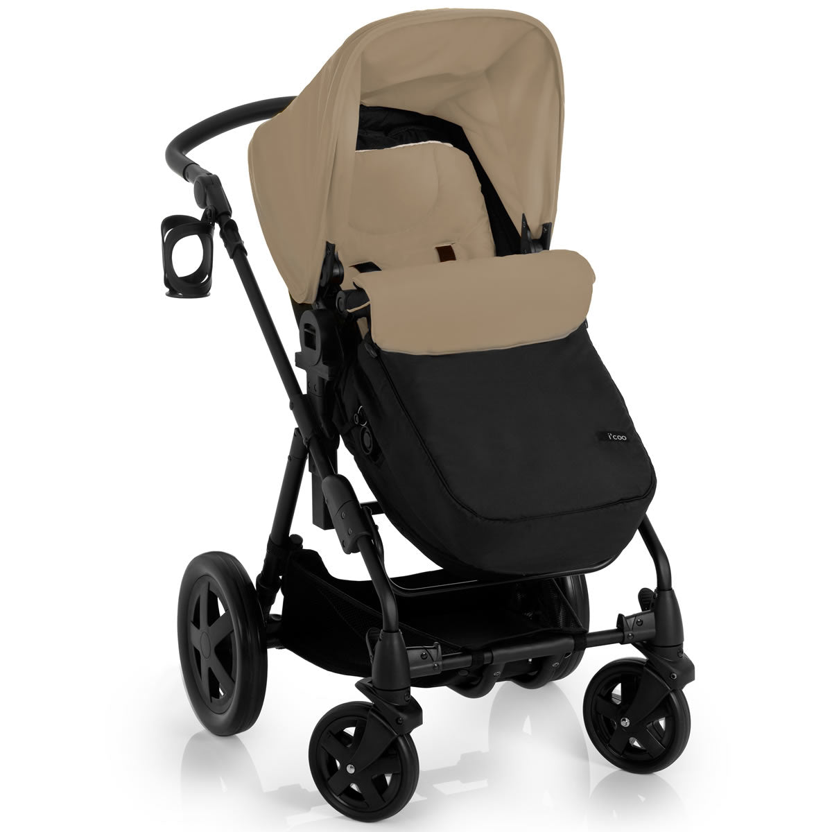 I'Coo Photon Stroller - Beige - The Photon is built on a German-engineered, ultra light aluminum frame and is loaded with an impressive list of features. The i'coo Photon's seat to bassinet conversion feature lets a baby lay completely flat one minute or sit up straight the next. Or...