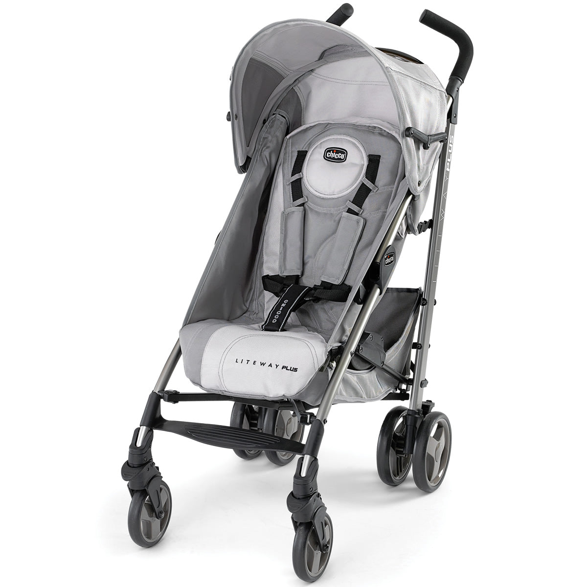 Chicco Liteway Plus Stroller - Silver - This 2-in-1 lightweight stroller conveniently converts from an infant car seat carrier to a toddler stroller for on-the-go parents and babies. The stroller seat features innovative forward-fold functionality to accept your KeyFit(r) with an audible...